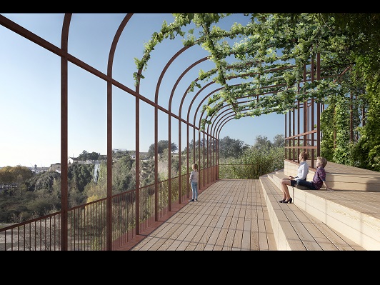 Un escalier en acier dessiné par François Delarozière, directeur artistique de la Compagnie de La Machine reliera le square Schwob et le bas de la carrière et l’Arbre aux hérons. Les visiteurs pourront rejoindre l’Arbre aux hérons en profitant des quatre belvédères, conçus comme des haltes uniques et sensibles qui rythmeront la montée ou la descente.