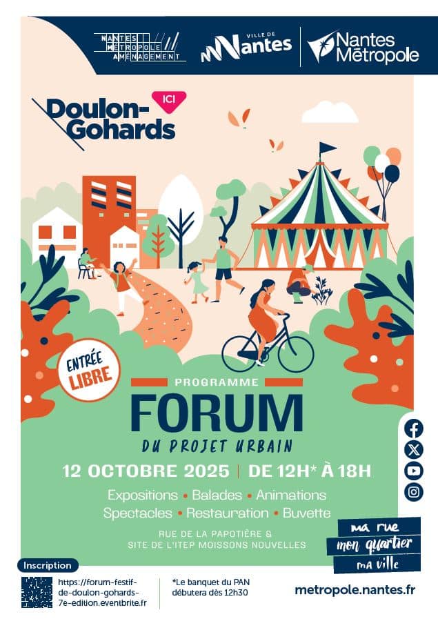 Dans le cadre du projet urbain de Doulon-Gohards, la 7e édition du forum du projet se tiendra le dimanche 12 octobre prochain ! Ce temps d’échange est un rendez-vous immanquable pour tout connaître du projet urbain. Mais aussi pour passer un moment convivial en famille !