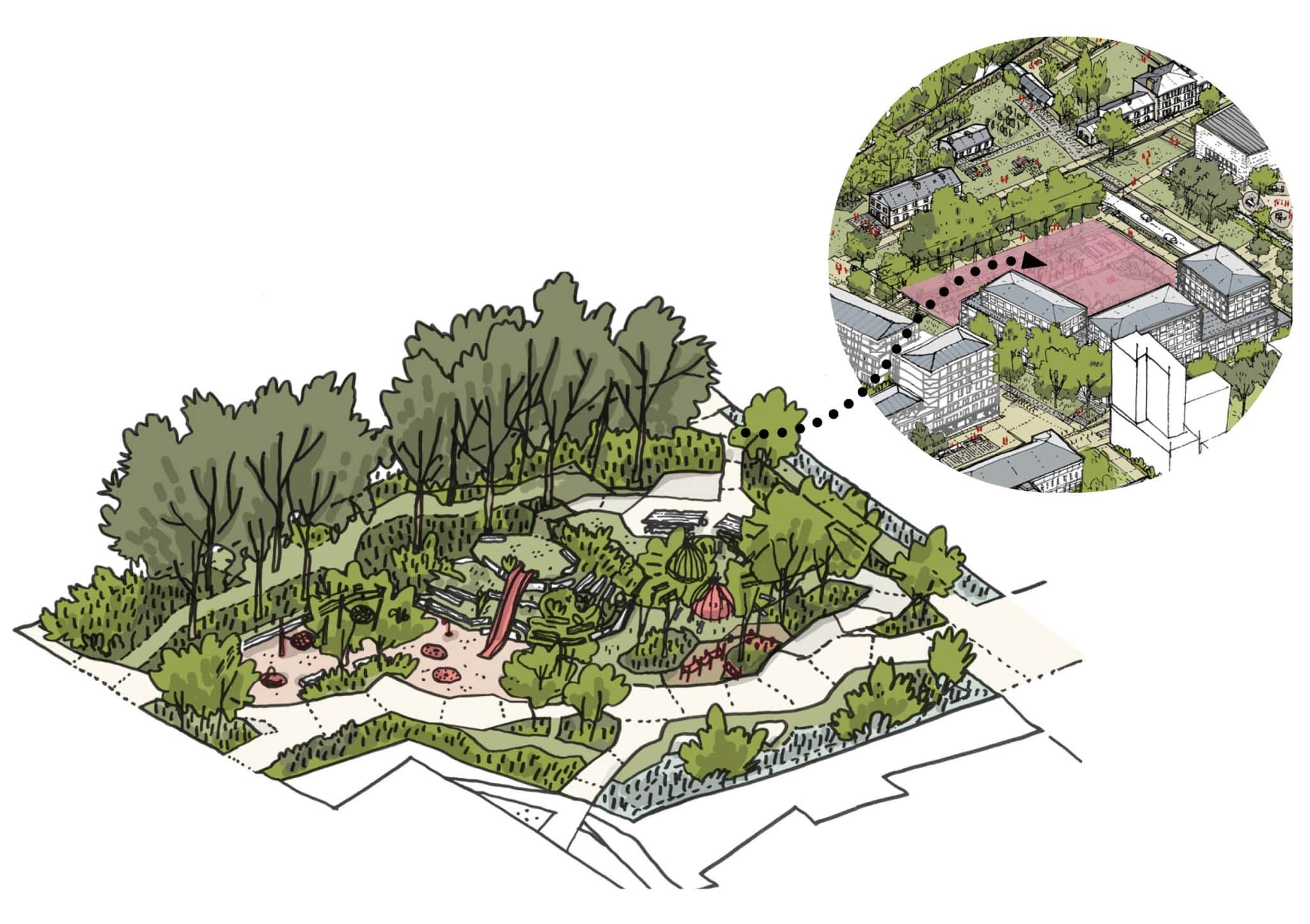 Plusieurs ateliers, dont des temps spécifiques avec l’école Alice Guy, ont permis de recueillir la parole des enfants, des parents d’élèves et des habitants. Leurs idées et propositions ont permis de définir un projet centré sur le plaisir de jouer, le lien à la nature et l’accessibilité pour toutes et tous.
