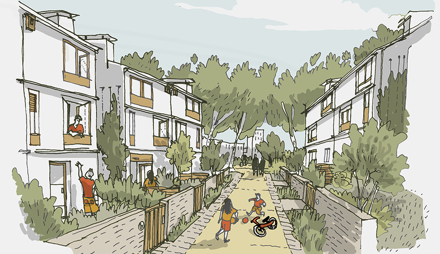 Le projet permettra également la rénovation de logements déjà existants pour les rendre plus agréables et plus adaptés aux modes de vie actuels et au climat. Chaque secteur proposera différents logements aux formes et aux typologies variées et adaptées à l’environnement proche et existant.