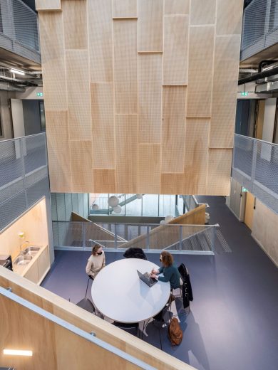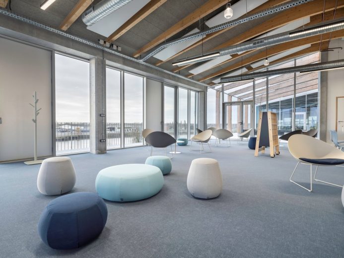 Lieu d’innovation hybride offrant des espaces à la fois de production (ateliers industriels), de travail (bureaux) et de rencontre, les principes techniques du bâtiment, conçu par AIA Life Designer, permettent de s’adapter aux multiples usages. Sur près de 6 000 m², le projet propose une grande diversité d’atmosphères de travail : différentes typologies d’espaces du hall d’accueil à l’espace sur Loire sont pensées pour les collaborateurs et visiteurs. L’atrium, la terrasse ouverte sur le fleuve, le patio, la cafétéria offrent des lieux de concentration, de collaboration et de détente.
